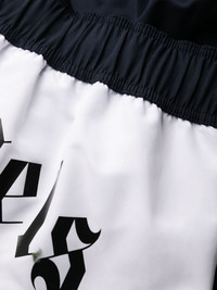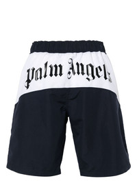 logo-print swim shorts Accented with a logo print on a contrasting white panel at the rear, these swimming shorts capture Palm Angels’ laid-back aesthetic. The black-coloured silhouette is fastened with a drawstring waist for easy dressing. Highlights - Navy blue/white - Colour-block panelled design - Two side inset pockets - Logo print to the rear - Mesh lining - Elasticated waistband with internal drawstring - Be mindful to try on swimwear over your own garments. Made in Italy Composition Lining: Polyester 100% Outer: Polyester 100%