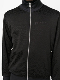 logo-print track jacket In a refined tonal design, this track jacket by Palm Angels is decorated with a leopard motif throughout. The black design features a logo print and side stripe detailing, which emphasises their sporty feel. Made in Italy Composition Outer: Polyester 100%, Polyamide 50%, Viscose 47%, Spandex/Elastane 3% Lining: Polyester 100% SIZE & FIT Model measurements Height 6 ft 2 in(1.88 m) Bust/Chest 36.61 in(93 cm) Hips 35.82 in(91 cm) Waist 27.95 in(71 cm) FittingInformation This piece fits true to size. We recommend you get your regular size Cut for a slim fit Made with a mid-weight stretch fabric Washing instructions Dry Clean Only