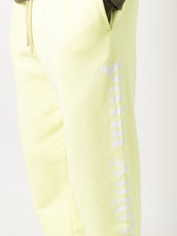 logo-print track pants Palm Angels' track pants are defined by their invigorating lemon-sherbert hue. This slouchy drawstring pair is minimally detailed with the brand's Gothic logo along each leg in contrasting white letters. Imported Composition Cotton 100% SIZE & FIT Model measurements Height 6 ft 2 in(1.87 m) Bust/Chest 36.41 in(92.5 cm) Hips 37 in(94 cm) Waist 29.52 in(75 cm) FittingInformation This piece fits true to size. We recommend you get your regular size Designed to be loose over the leg with a fitted waist and hem Made with a mid-weight fabric Washing instructions Hand Wash