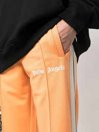 logo-print track pants Adorned with Palm Angels' signature logo, these track pants are presented in a bright orange hue for SS23. Made in Italy Composition Outer: Polyester 100% Lining: Polyester 100% SIZE & FIT Model measurements Height 6 ft 1 in(1.85 m) Bust/Chest 34.6 in(88 cm) Hips 36.2 in(92 cm) Waist 27.2 in(69 cm) FittingInformation This piece fits true to size. We recommend you get your regular size Cut for a slim fit Made with a mid-weight fabric