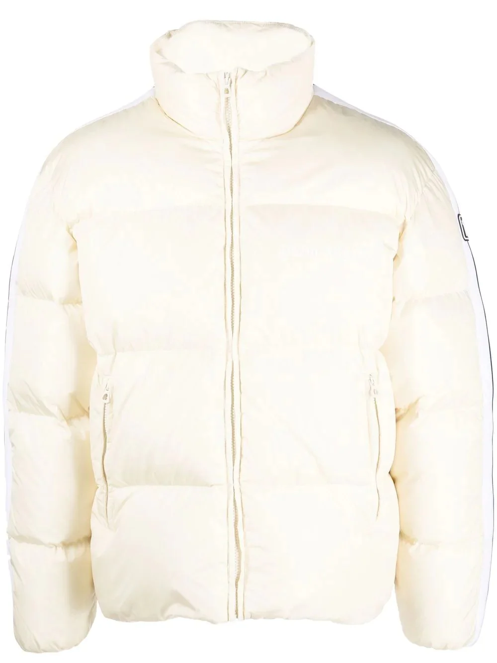 logo-trim padded short jacket Subtly detailed with a tonal logo trim to each outer sleeve, this padded short jacket from Pam Angels is presented in a crisp white hue. Ideal for everyday use, the causal silhouette fastens with a central zip closure and two side zipped pockets. Imported Composition Lining: Feather Down 100%, Polyamide 100% Outer: Polyamide 100%, Polyester 100% Washing instructions Machine Wash