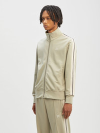 Regular fit grey men's tracksuit jacket, with standing collar and full-length zip, side pockets and double white band on the sleeves. Palm Angels Monogram outlines embroidered in white on the heart. FABRIC 100% POLYESTER LINING 100% POLYESTER EMBROIDERY 100% POLYESTER DETAIL 1 96% POLYESTER 4% ELASTANE DETAIL 2 100% POLYESTER MODEL ISMAEL WEARS SIZE M HEIGHT: 6’2" (188 CM) CHEST: 38" (98 CM) WAIST: 30" (78 CM) HIPS: 37" (94 CM) PRODUCT ID: PMBD058E23FAB0010703