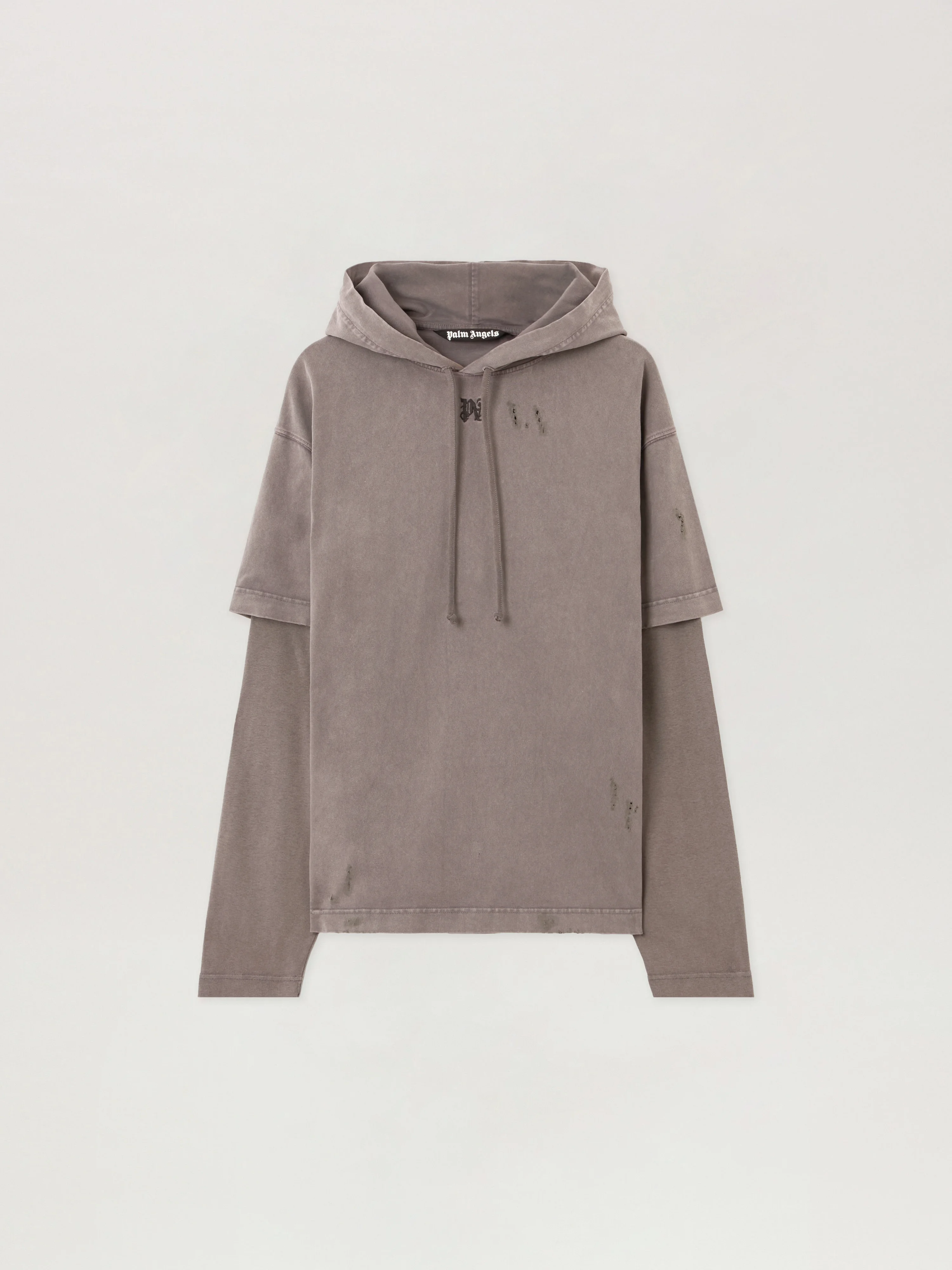 This layered hoodie features a distressed finish with monogram detailing, embodying a raw, streetwise aesthetic. - Distressed finish with monogram detail - Layered design for added texture - Relaxed fit with drop shoulders - Drawstring hood for adjustable coverage - Long sleeves with short sleeve overlay - Durable construction for everyday wear - Ribbed hem and cuffs for a secure fit DETAILS - 100% Polyester, Fabric: 100% Cotton, Fabric: 100% Cotton - Code: PMBB178F25FLE0010610