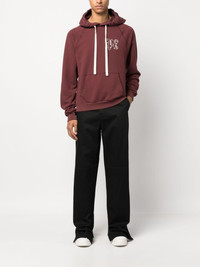 monogram-embroidered cotton hoodie This hoodie by Palm Angels boasts a classic silhouette and is simply decorated with the brand's signature monogram embroidery at the chest. It's cut from pure cotton and comes in a bold bordeaux colourway. Highlights - Bordeaux red - Cotton - Embroidered logo at the chest - Drawstring hood - Front pouch pocket - Long raglan sleeves - Ribbed cuffs and hem - Straight hem Made in Italy Composition Cotton 100%, Polyester 100% SIZE & FIT Model measurements Height 6 ft 2 in(1.87 m) Bust/Chest 38.18 in(97 cm) Hips 36.61 in(93 cm) Waist 29.13 in(74 cm) FittingInformation Designed for a slim fit, offering a comfortable fit that sits just away from the body The ribbed hem offers a close, comfortable fit Made from a midweight fabric This piece fits true to size – take your usual size Washing instructions Machine Wash