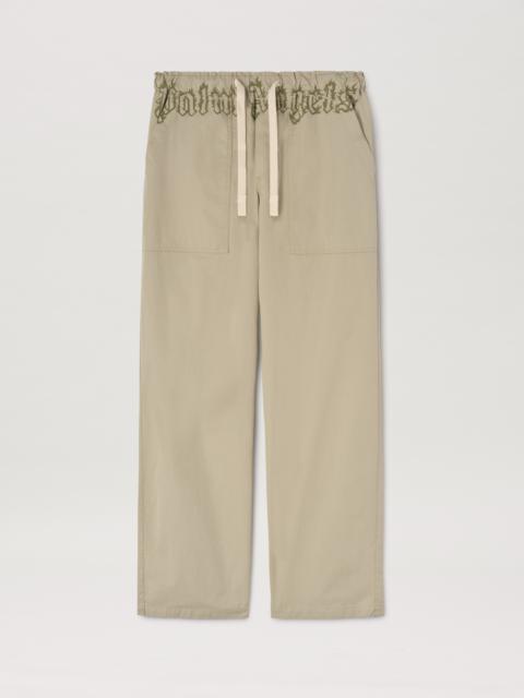 Logo mutations that turn a timeless icon into a new seasonal graphic. Men's black sweat pants with elastic and drawstring waistband, loose fit, with Curved logo printed in glossy black on back. SALAH WEARS SIZE 48 HEIGHT: 6' 0” (183 CM) BUST: 37.5” (95 CM) WAIST: 30” (76 CM) HIPS: 36” (91 CM) PRODUCT ID: PMCA117S25FAB0011010
