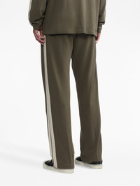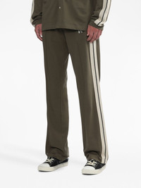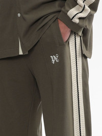 monogram-embroidered track pants With stripe detailing highlighting the sides, these Palm Angels track pants are rendered in an olive-green and contrasting beige colourway. They feature a straight-leg cut with exposed seams through the front and an embroidered logo at the leg. Highlights - Olive green/beige - Cotton - Embroidered logo at the leg - Side stripe detailing - Elasticated waistband with internal drawstring - Two side welt pockets - Straight leg Made in Italy Composition Cotton 100% Washing instructions Read Manufacturer Guidelines