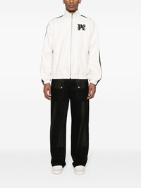 monogram-patch leather jacket This leather jacket by Palm Angels is cut to a relaxed silhouette with elasticated cuffs that lend an athletic feel. Boasting a monogram applique on the chest, the jacket is instantly recognisable as a Palm Angels creation. Highlights - Off-white/black - Lambskin - Cracked effect - Logo patch at the chest - Stripe detailing to the sleeves - Branded zip puller - Stand-up collar - Front zip fastening - Long sleeves - Elasticated cuffs - Two front zip-fastening pockets - Internal slip pocket - Elasticated hem - Full lining - Authenticity qr code Imported Composition Outer: Lambskin 100%, Polyester 79%, Polyurethane 19%, Viscose 2% Lining: Cupro 100%, Cotton 100% SIZE & FIT Model measurements Height 6 ft 2 in(1.87 m) Bust/Chest 36.22 in(92 cm) Hips 37 in(94 cm) Waist 27.95 in(71 cm) FittingInformation Designed for a relaxed fit, this piece allows for comfort and movement when worn The elasticated hem allows for movement and a comfortable fit Firm leather offering little flexibility to maintain its durability and sturdiness This piece fits true to size – take your usual size Washing instructions Specialist Cleaning