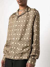 PALM ANGELS MEN monogram-print silk shirt Inspired by Californian culture and aesthetic, Palm Angels presents this relaxed shirt for AW23 in a brown colourway. Spun from silk, it boasts the iconic brand's monogram printed all-over. Highlights brown silk monogram pattern classic collar front button fastening long sleeves straight hem Composition Outer: Silk 100% Wearing The model is 1.87 m. Fitting information Designed for a relaxed fit, this piece allows for comfort and movement when worn Made from a midweight non-stretch fabric This piece fits true to size – take your usual size