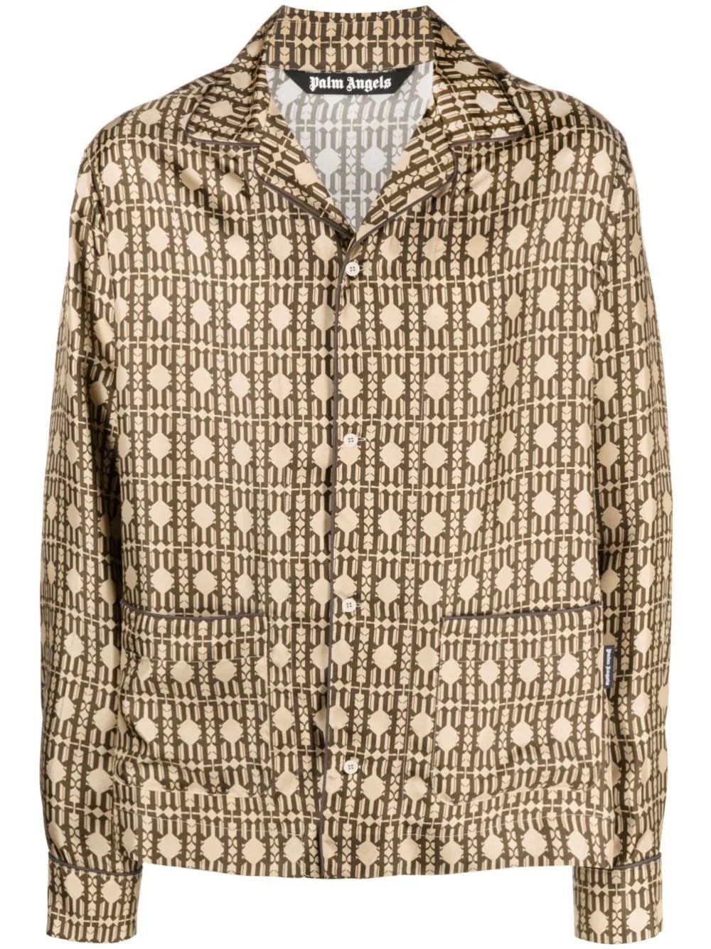 PALM ANGELS MEN Allover Monogram Pajama Shirt Long Sleeves Beige