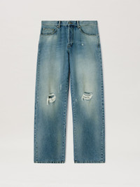 Shapes, washes and pattern that deliver an all-new denim. Men's 5-pocket pants, loose fit, in light blue denim with distressed details and with Monogram in series printed in black on back pocket and legs. WILL WEARS SIZE 32 HEIGHT: 6' 2" (189 CM) BUST: 35" (88 CM) WAIST: 28" (71 CM) HIPS: 35" (90 CM) PRODUCT ID: PMYA044F24DEN0010503