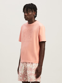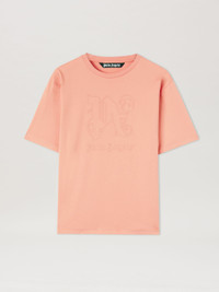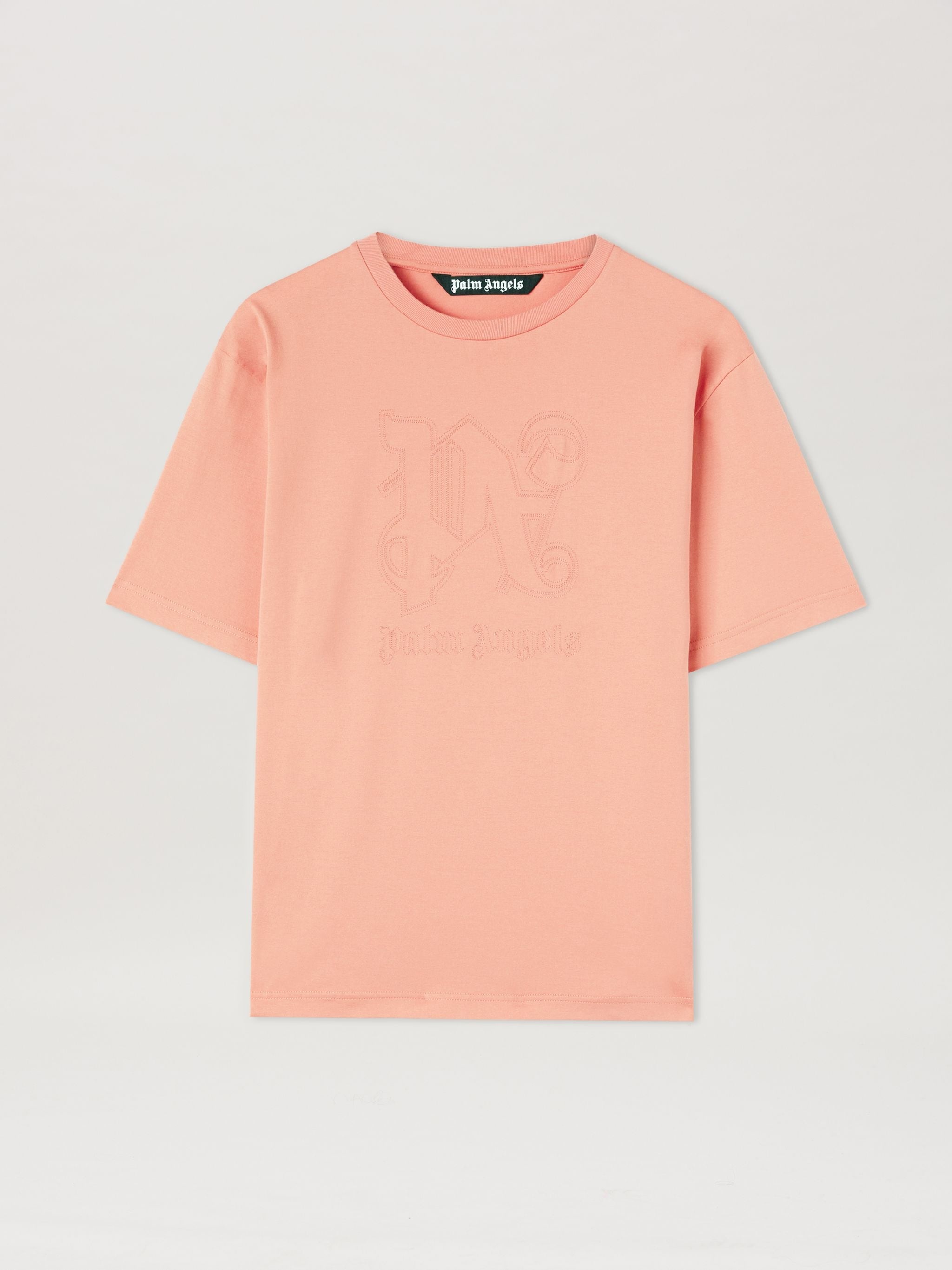 Emblems and images expressing a sense of identity. Men's pink short-sleeved, slim-fit T-shirt with tone-on-tone Monogram and logo embroidered on the front. Paolo wears size M Height: 6' 2" (188 cm) Bust: 34" (86 cm) Waist: 28" (72 cm) Hips: 36" (92 cm) PRODUCT ID: PMAA089R24JER0023030