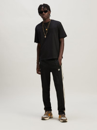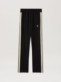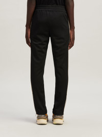 A new take on an identity garment. Men's black tracksuit pants with elastic waistband, ecru side bands and ankle zippers, vertical pockets on the front, and Monogram embroidered in black under the left pocket. Paolo wears size M Height: 6' 2" (188 cm) Bust: 34" (86 cm) Waist: 28" (72 cm) Hips: 36" (92 cm) PRODUCT ID: PMCJ020R24FAB0011003