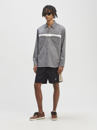 Black men's short pants, regular fit, with elastic-waist, side bands with trimming effect and Palm Angels Monogram embroidered with white profiles on the right side. FABRIC 100% LINEN EMBROIDERY 100% POLYESTER DETAIL 100% COTTON MODEL ISMAEL WEARS SIZE M HEIGHT: 6’2" (188 CM) CHEST: 38" (98 CM) WAIST: 30" (78 CM) HIPS: 37" (94 CM) PRODUCT ID: PMCL003E23FAB0011003