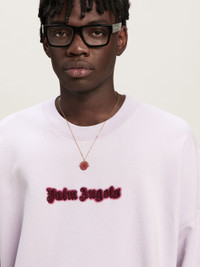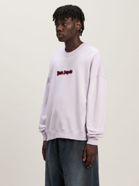 Logo variants with unique visual and tactile effects. Men's lilac, over-fit sweatshirt with burgundy Palm Angels logo embroidered with neon effect print on front. Paolo wears size M Height: 6' 2" (188 cm) Bust: 34" (86 cm) Waist: 28" (72 cm) Hips: 36" (92 cm) Ebba wears size 48 Height: 5' 10" (178 cm) Bust: 31" (79 cm) Waist: 23" (60 cm) Hips: 35" (89 cm) PRODUCT ID: PMBA080F24FLE0023628