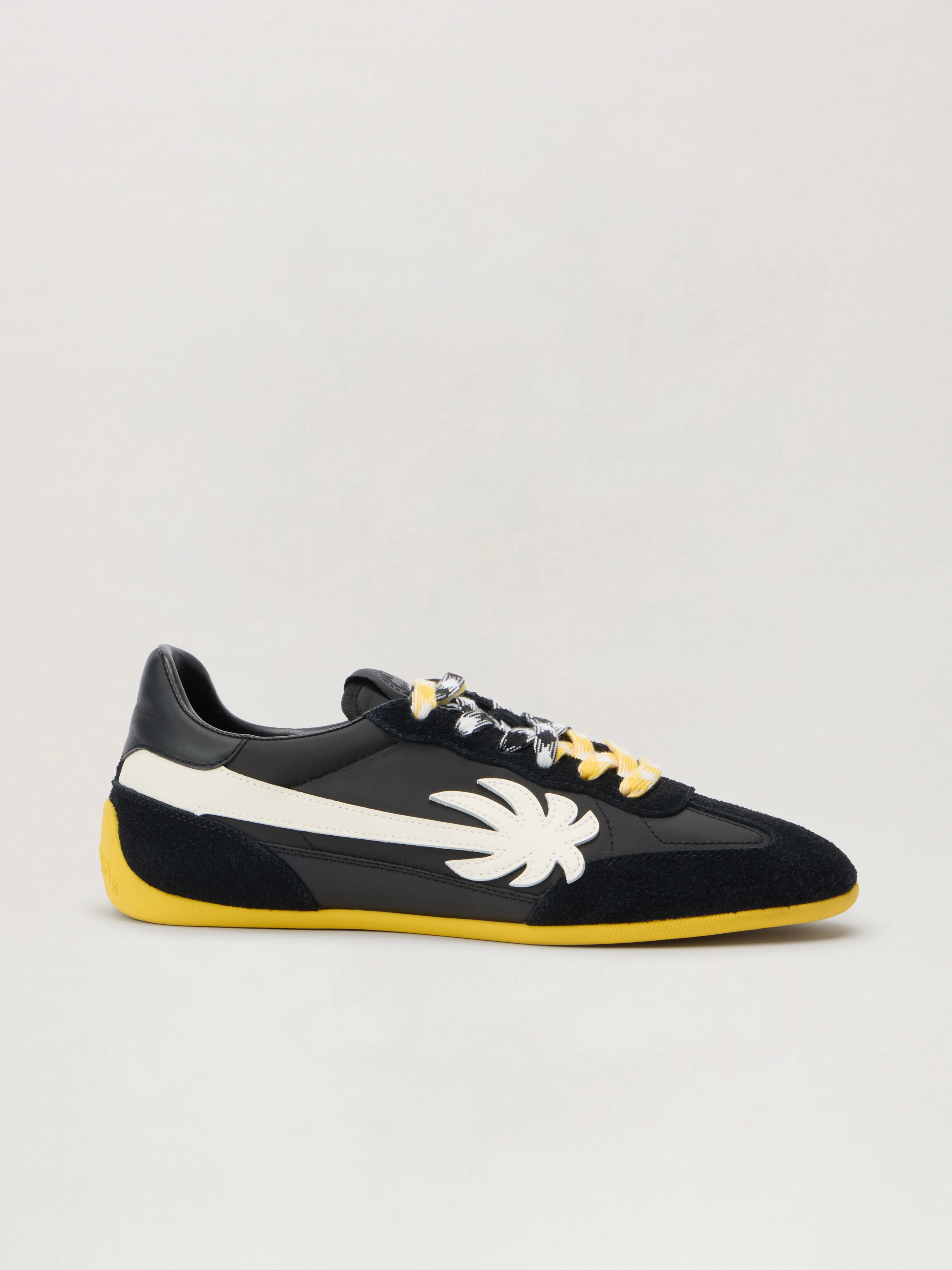 Retro-inspired sneakers with suede overlays and bold palm motif, offering a unique streetwear edge. - Dynamic retro-inspired silhouette - Suede overlays with soft-grain finish - Bold palm motif on side - Contrasting outsole for added style - Reinforced back for durability - Embossed logo on heel - Eye-catching lace design - Textured toe for rugged appeal DETAILS - 100% Rubber, 52% Polyamide 48% Bovine leather - Code: PMIA105F25LEA0011001