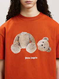 SHORT SLEEVES T-SHIRT IN BRICK RED COTTON JERSEY WITH BROKEN BEAR GRAPHIC PRINTED AT FRONT. "PALM ANGELS" LOGO PRINTED IN WHITE AT FRONT AND AT BACK. CREWNECK COLLAR. REGULAR FIT. FABRIC 100% COTTON - RIB DETAIL 100% COTTON MODEL RAYAN WEARS SIZE M HEIGHT: 5’11" (181 CM) CHEST: 32” (82 CM) WAIST: 27” (68 CM) HIPS: 36” (92 CM) PRODUCT ID: PMAA001F22JER0052760