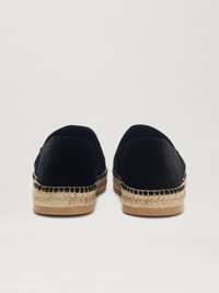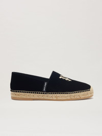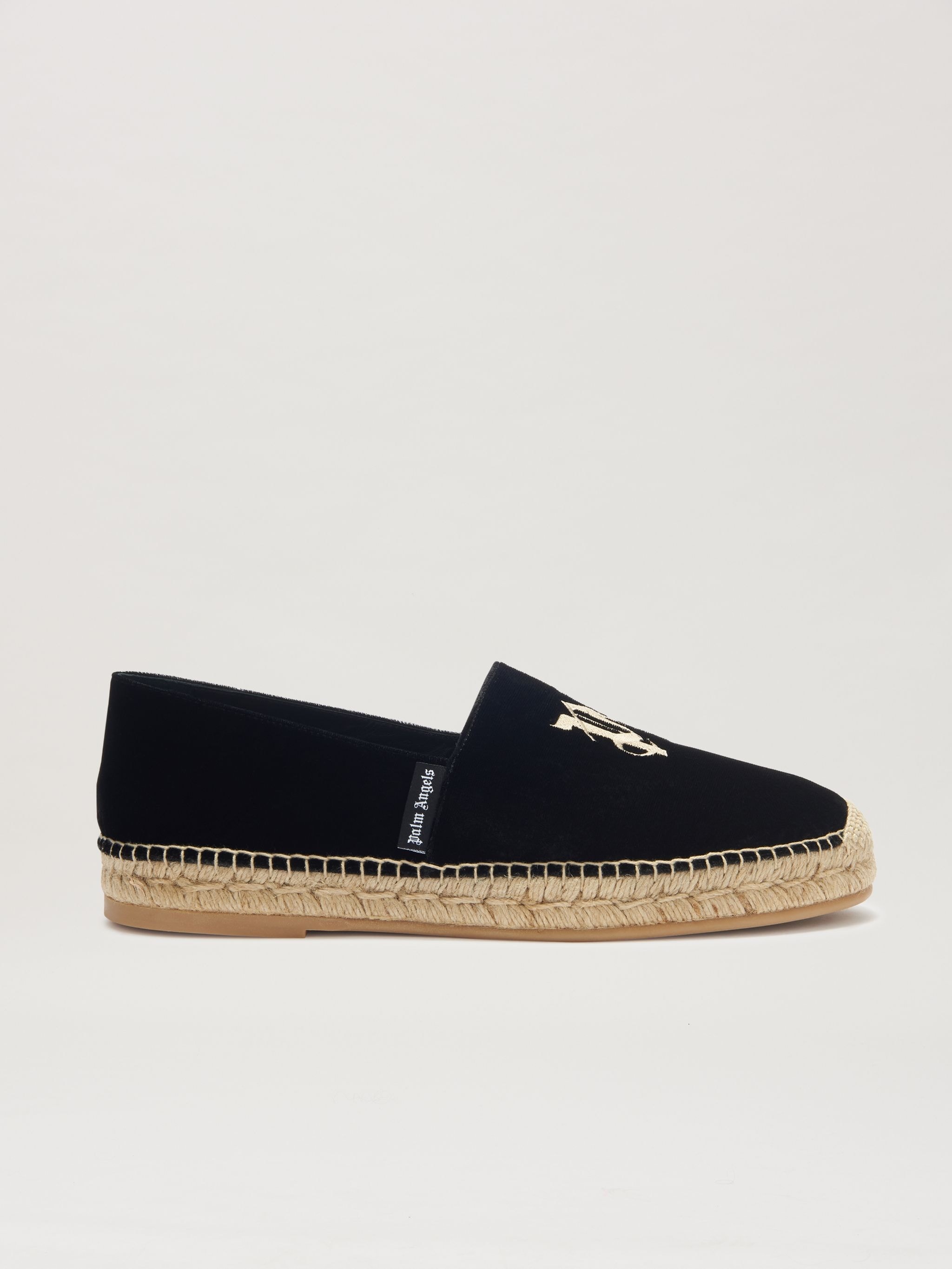 A call for summer. Men's black canvas and rope espadrilles with Monogram embroidered in white on the front. PRODUCT ID: PMIB005R24FAB0011000