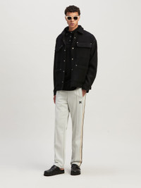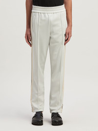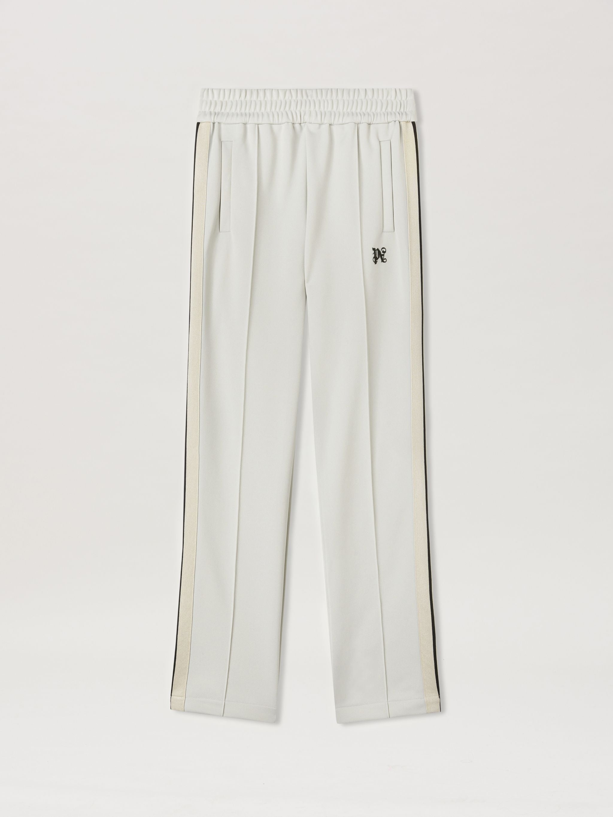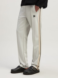 A new take on an identity garment. Men's white tracksuit pants with elastic waistband, ecru side bands and ankle zippers, vertical pockets on the front, and Monogram embroidered in white under the left pocket. Denzel wears size M Height: 6' 25" (190 cm) Bust: 36" (91 cm) Waist: 28" (72 cm) Hips: 35" (88 cm) PRODUCT ID: PMCJ020R24FAB0010510