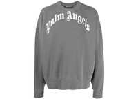 Palm Angels Curved Logo Crewneck Dark Grey/White (SS22)