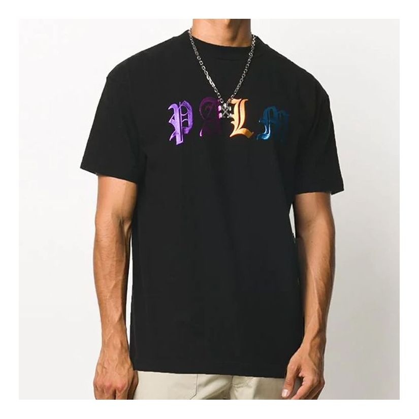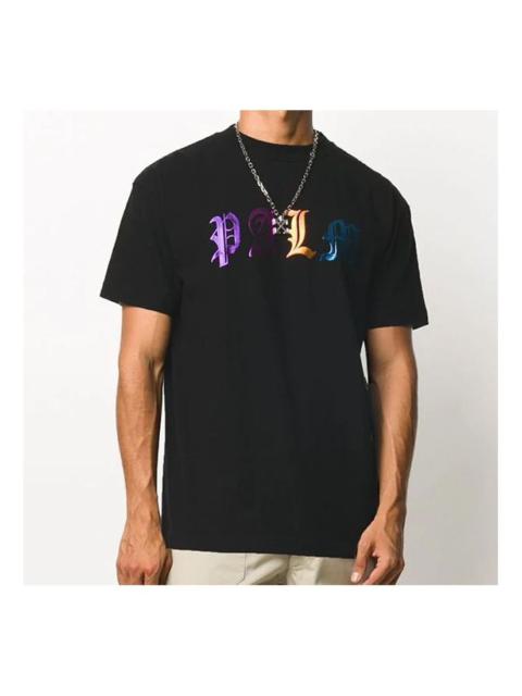 Men's PALM ANGELS Logo Printing Short Sleeve Black PMAA001E20JER0071084