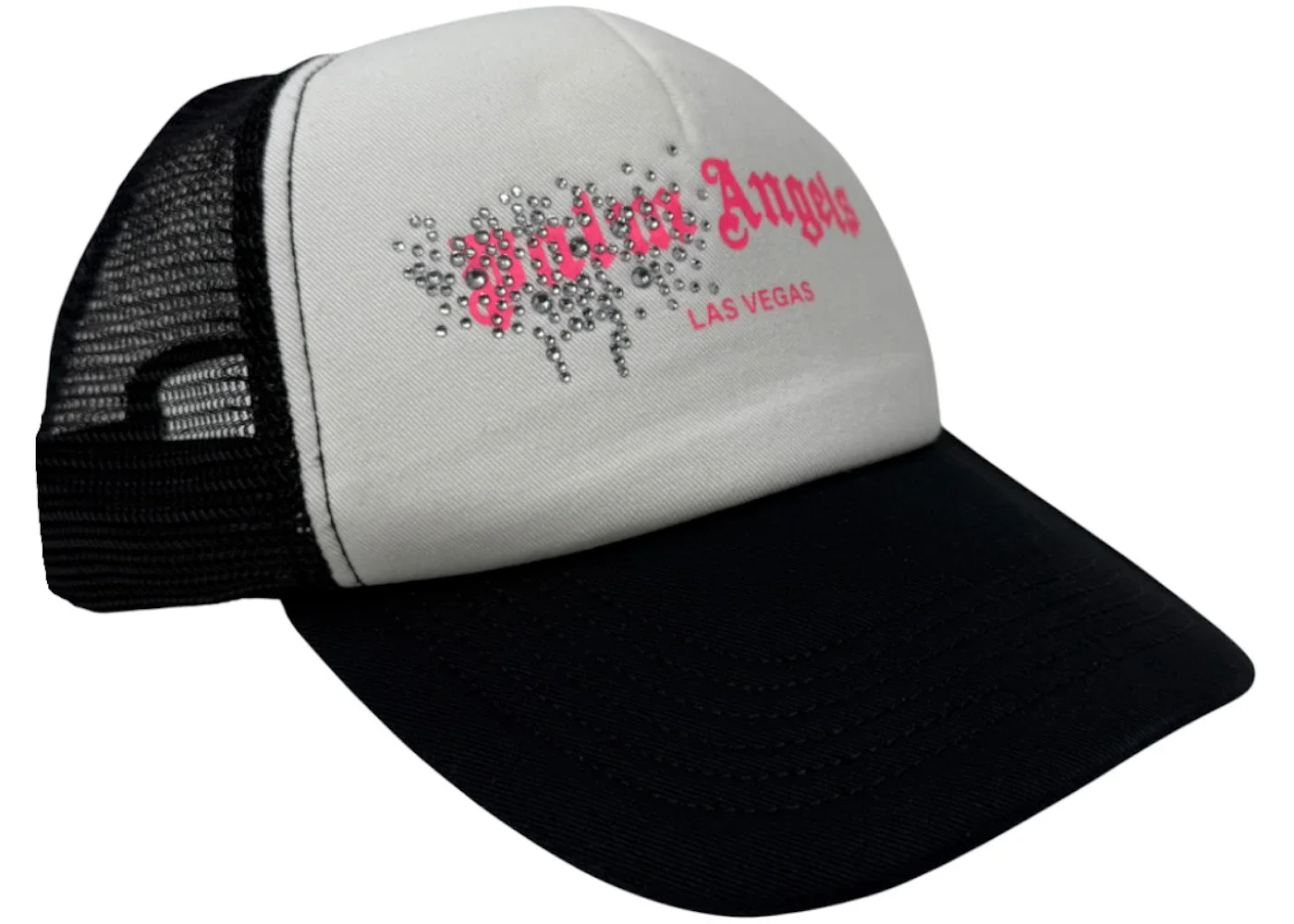 Palm Angels Rhinestone Las Vegas Trucker Cap Black/White/Pink