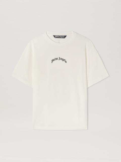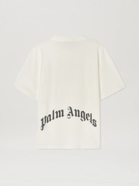 Logo mutations that make a timeless icon a new seasonal graphic. Men's oversized white T-shirt with Curved logo in black printed in a small size on the front and in a larger size on the back at the bottom. PRODUCT ID: PMAA089S25JER0040310