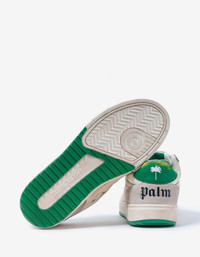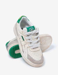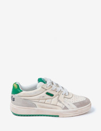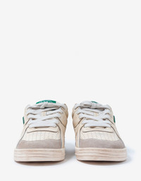 - White with green low-top trainers - Palm tree graphic on the back - University label on the tongue - Vintage effect - Suede leather accents - Perforated toe box - Logo on the heels - Outer: Leather - Inner: Leather & Textile - Sole: Rubber