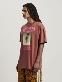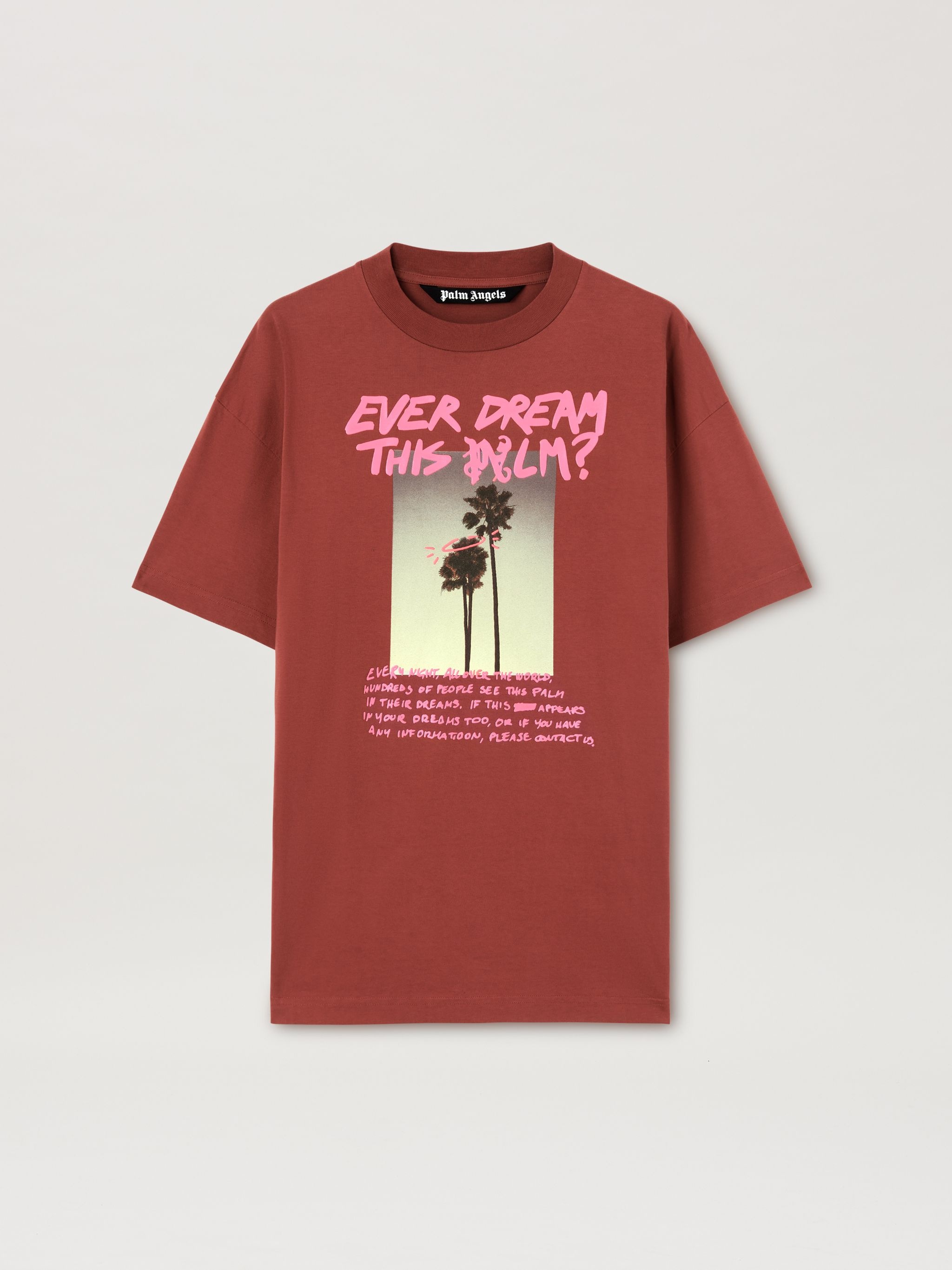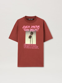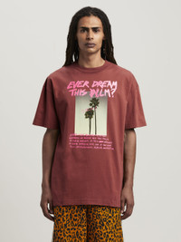 Messages and quotes that fit your personality. Men's brick red crewneck T-shirt with photographic palm tree print, bold lettering and "Palm Dream" message in fuchsia. Mohamed wears size M Height: 6' 1"" (185 cm) Bust: 34"" (86 cm) Waist: 28"" (71 cm) Hips: 37"" (94 cm) PRODUCT ID: PMAA072S24JER0036268