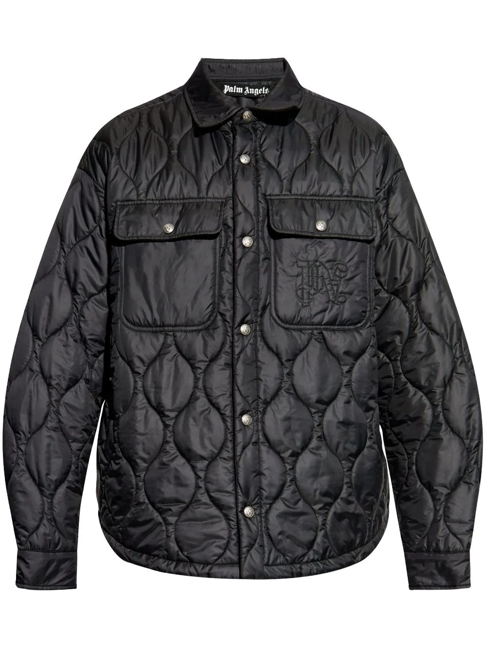 embroidered-logo quilted jacket Highlights - Black - Quilted - Classic collar - Monogram pattern - Two chest flap pockets - Embroidered logo at the chest - Front press-stud fastening - Long sleeves - Rear curved hem Imported Composition Polyester 100%