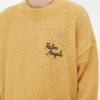 Beginning when Francesco Ragazzi started archiving photography from the LA skater scene, Palm Angels is a reminder of where this part of American Culture started: the skate park. Crafted from a mohair blend, this beige and yellow knit features a dropped shoulder silhouette, enhancing the relaxed style of this design. With branded embroidery on the front, a palm tree graphic appears on the back. - Mohair 48%, Polyamide 35%, Wool 17% - Ribbed Trims - Crewneck - Made in Italy