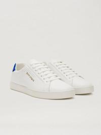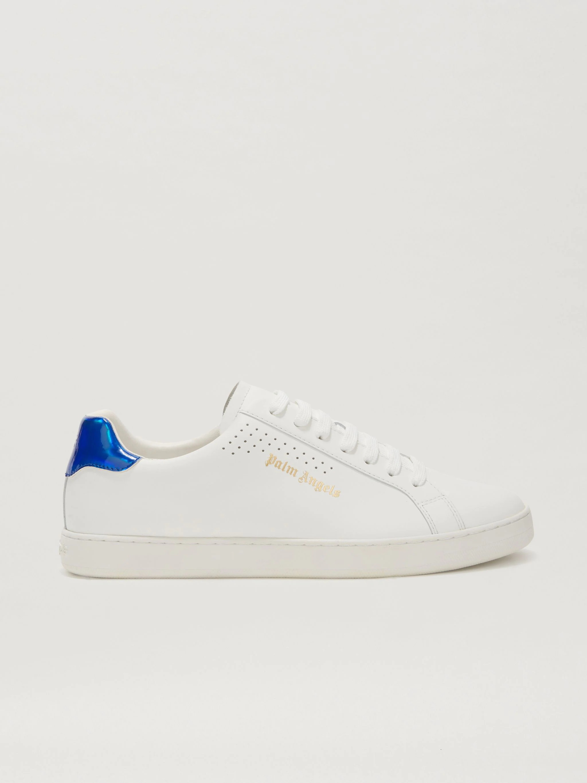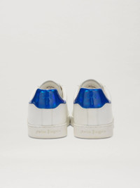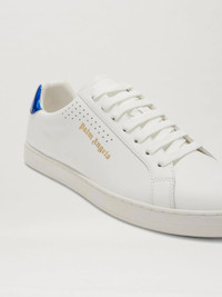 LOW-TOP TENNIS SNEAKERS IN WHITE WITH BLUE ANIMATIONS DETAIL AT BACK. "PALM ANGELS" LOGO PRINTED AT SIDES. WHITE RUBBER SOLE. WHITE LACE-UP CLOSURE. MATERIAL 100% LEATHER LINING 50% LEATHER 50% POLYESTER SOLE 100% RUBBER PRODUCT ID: PMIA056F22LEA0010145