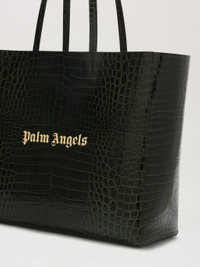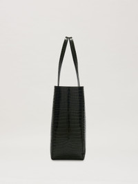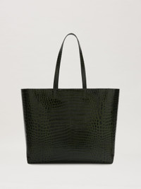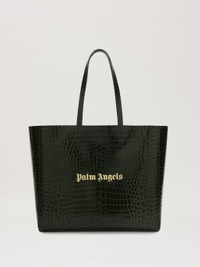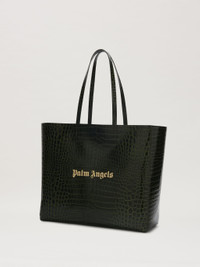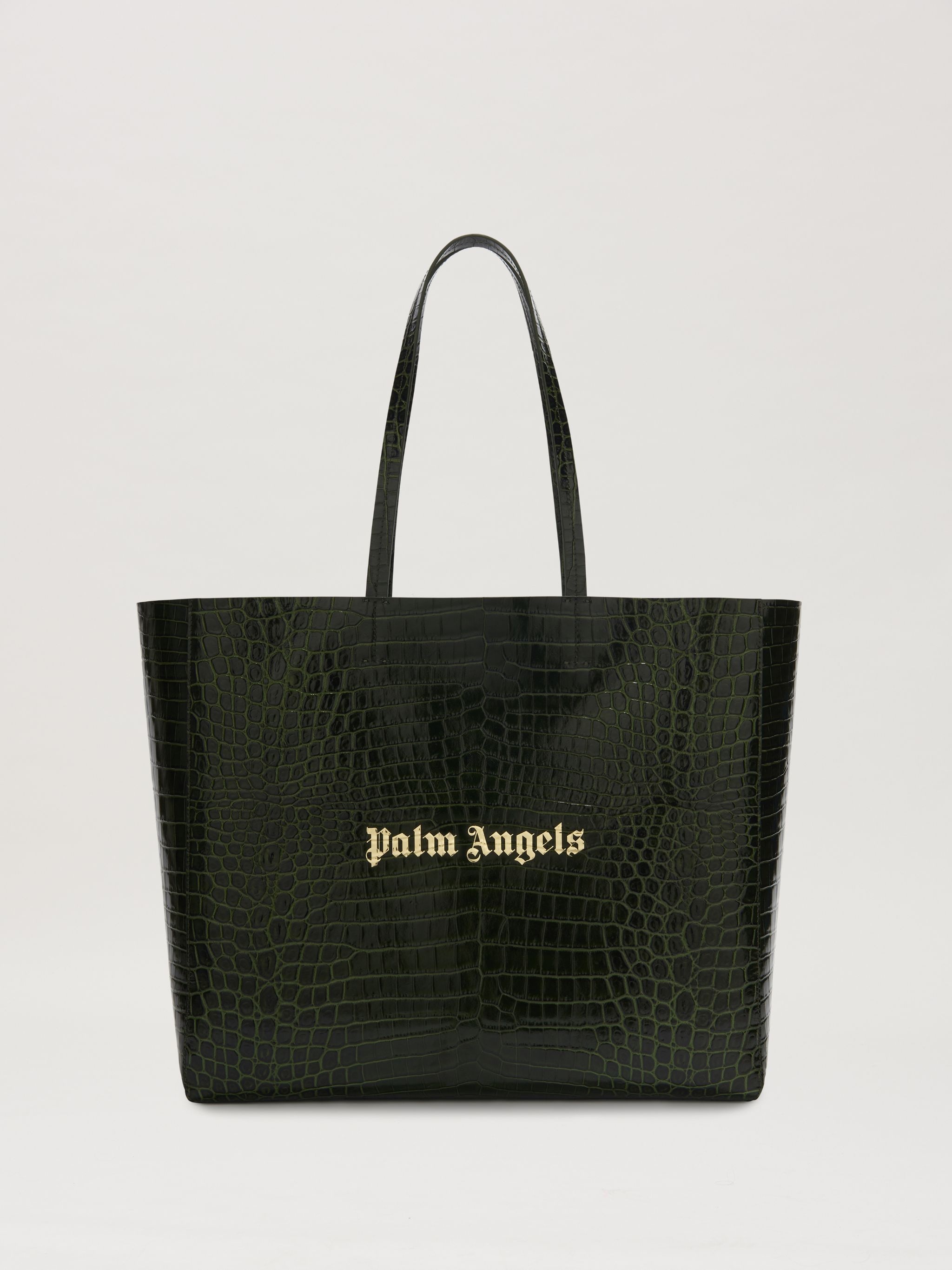 To stand out with an edgy touch. Dark green crocodile-printed leather shopping bag with long handles and gold-printed logo on front. Width: 48cm (top),39cm(bottom) Height: 34cm Depth: 15cm Weight: 75 gr PRODUCT ID: PMNA075R24LEA0015576