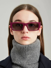 Unexpected is the key word for Palm. A dissonance staggers the structure, breaking the temple linearity and creating a distortion in the frame. Rectangular sunglasses in purple with dark grey lenses. "Palm Angels" logo printed at sides. PRODUCT ID: PERI002Y21PLA0013705