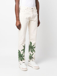 palm tree-print straight-leg jeans Palm Angels' jeans are punctuated with skull motifs nestled amongst tropical palm trees at the legs. The emblems pop against the white denim. Made in Italy Composition Outer: Leather 100%, Cotton 100% Lining: Cotton 100% SIZE & FIT Model measurements Height 6 ft 2 in(1.88 m) Bust/Chest 36.61 in(93 cm) Hips 35.82 in(91 cm) Waist 27.95 in(71 cm) Washing instructions Hand Wash