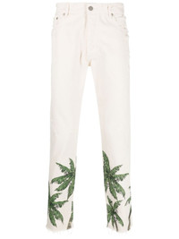palm tree-print straight-leg jeans