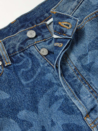 Palm Angels started out as a coffee table book inspired by Southern California skate culture and has since evolved into a cult line of casualwear. These straight-leg jeans are laser-printed with cartoonish palm trees to create a unique faded look. Small to size. See Size & Fit notes. Size & Fit - Fits small to size. Take one size larger than normal - Relaxed-straight leg, high-rise style - Mid-weight, non-stretchy fabric - Model is shown wearing a 32 - Model measures: waist size 30, height 6'0"/ 183cm Details & Care - Tonal-blue denim - Button fastenings - 100% cotton; lining: 65% polyester, 35% cotton - Machine wash