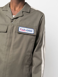 Paradise-embroidered shirt jacket Palm Angels is a streetwear label whose aesthetic is inspired by the vibrancy of the Californian skate scene. For SS23, the brand merges their inspirations with a utilitarian theme, as presented by this jacket - which is equipped with two chest flap pockets that riff on workwear styles. Made in Italy Composition Outer: Polyester 65%, Cotton 35% Lining: Cotton 100% SIZE & FIT Model measurements Height 6 ft 0 in(1.84 m) Bust/Chest 36.22 in(92 cm) Hips 35.43 in(90 cm) Waist 26.77 in(68 cm) FittingInformation This piece fits true to size. We recommend you get your regular size Cut for a loose fit Made with a mid-weight non-stretch fabric Washing instructions Dry Clean Only