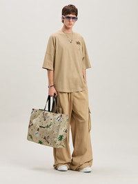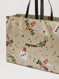 A carry all bag wth one of the exclusibe print of the season: the pin up. Men's shopping bag with double glossy handels and an all ove rpattern of pin ups, dice, snakes and palm trees and logo Palm Angels. DETAILS - Height: 46 Cm Width: 36 Cm Depth: 15 Cm Weight: 290 Gr Fabric 100% PolyamideLining 100% CottonMaterial 1 100% Bovine Leather - Code: PMNA07CS25FAB0028410