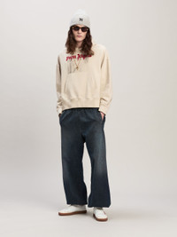 Themes from own imaginary sealed by an embossed loho. Men's light beige hoodie with pouch pocket and pencil effect portrait of woman printed on front, with Palm Angels logo printed in red with sealing wax effect on top, and pencil effect wings printed on back. LORENZO WEARS SIZE M HEIGHT: 6' 2" (189 CM) BUST: 36" (92 CM) WAIST: 28" (71 CM) HIPS: 34"" (86 CM) PRODUCT ID: PMBB164F24FLE0016126