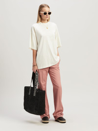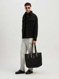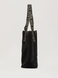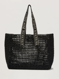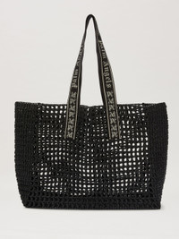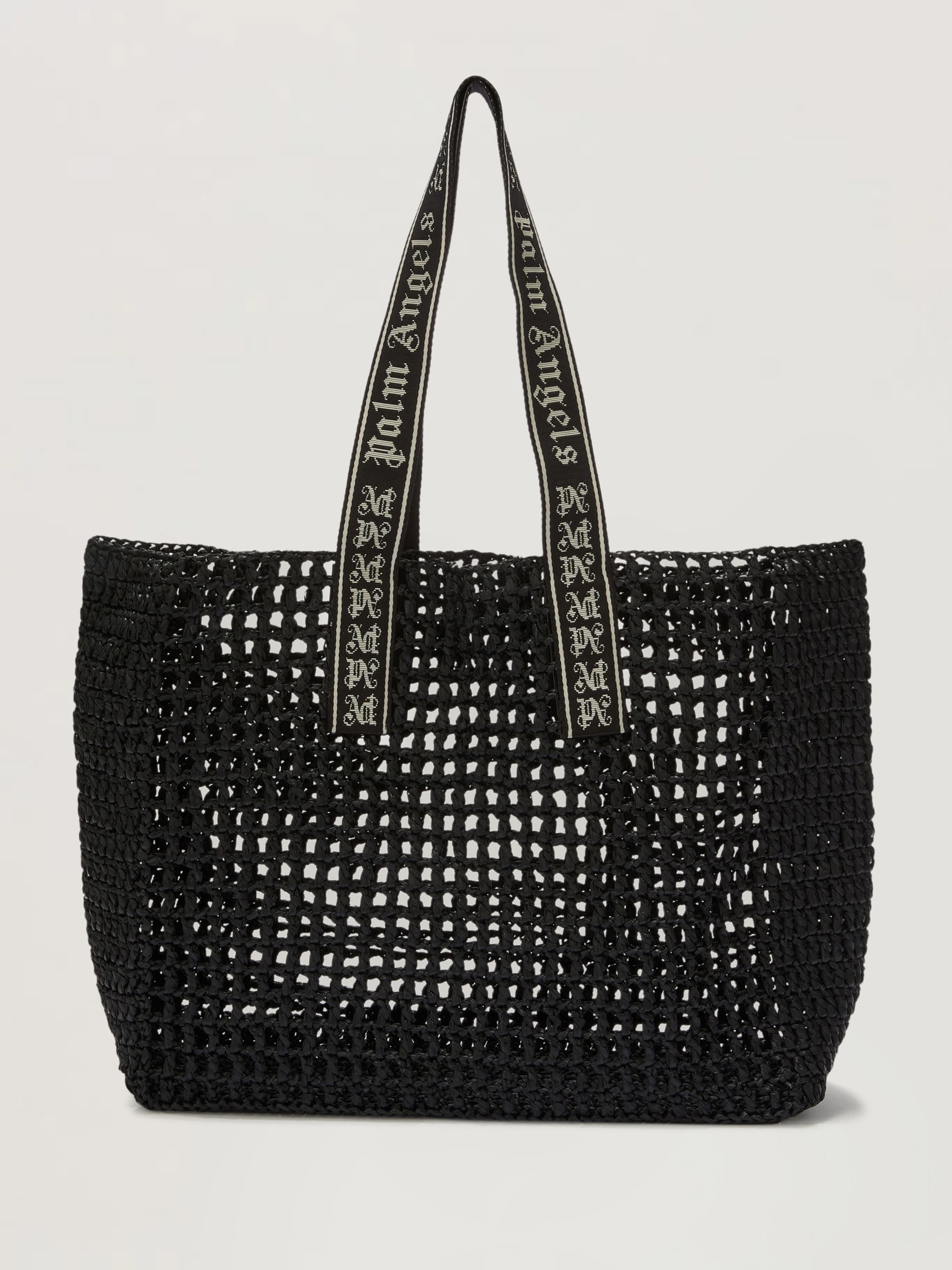 The bigger, the better. Black crochet raffia tote bag with long black ribbon handles with Monogram and Palm Angels logo in white. Width: 40cm Height: 34cm Depth: 12cm Weight: 40 gr PRODUCT ID: PMNA073R24MAT0011010