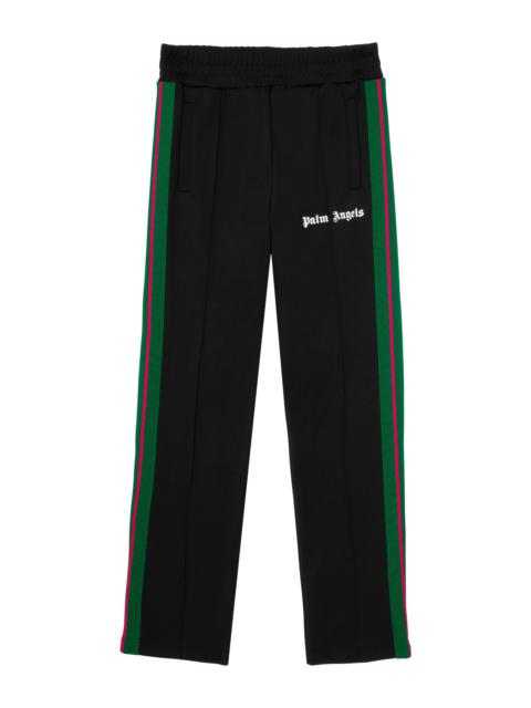 LONG TRACK PANTS IN RED. ELASTICIZED WAISTBAND. TWO-POCKET STYLING. CENTRAL PINCH SEAMS AND PALM ANGELS LOGO PRINTED AT FRONT. WHITE AND BLACK STRIPES AT SIDE LEGS. ZIP CLOSURE AT ANKLE CUFFS MODEL LAURY WEARS SIZE M HEIGHT: 185 CM CHEST: 86 CM WAIST: 67 CM HIPS: 89 CM PRODUCT ID: PMCA007R21FAB0012501