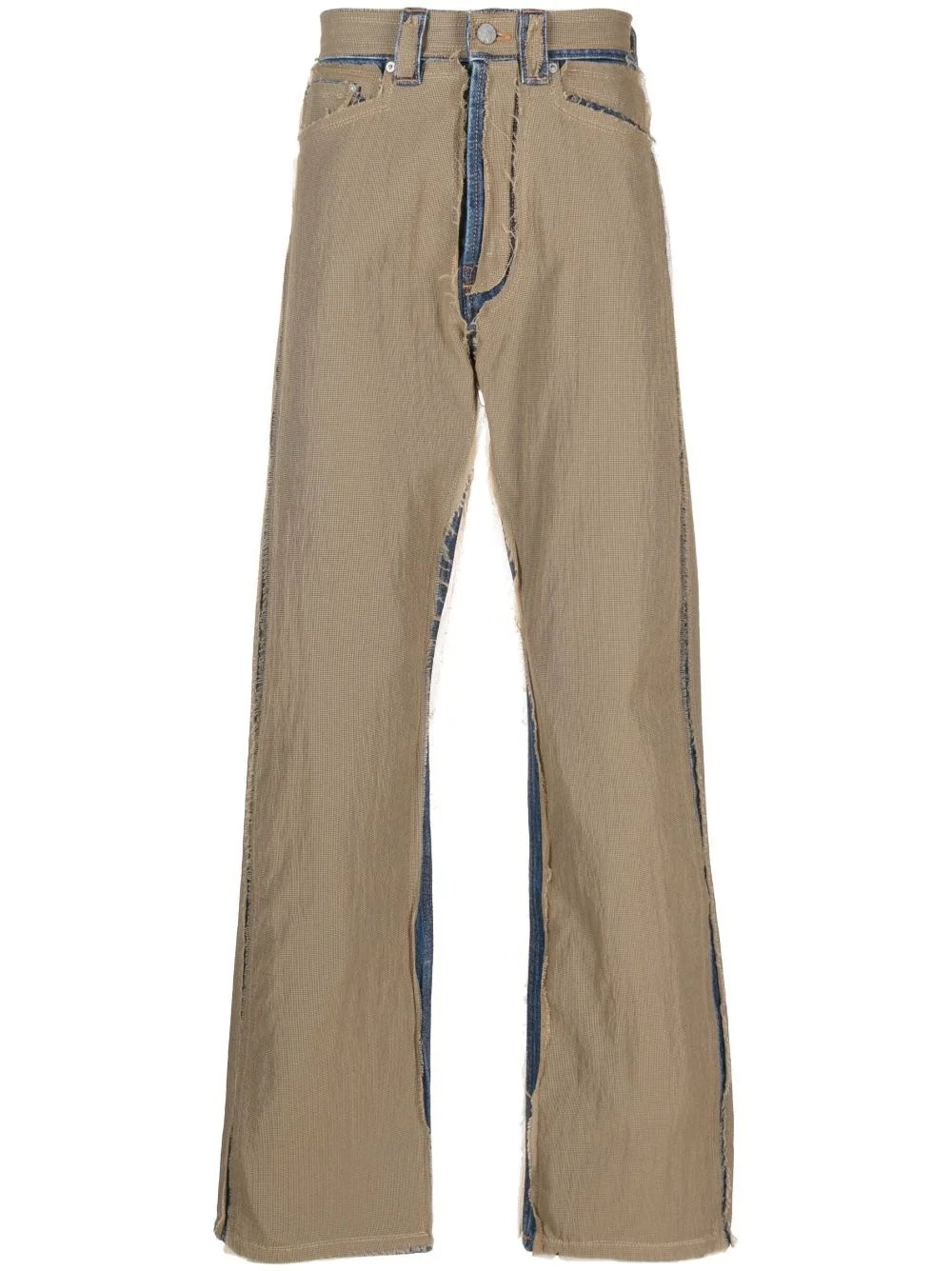 ripstop straight-leg trousers As seen in every collection, Palm Angels' laidback style is imbued in these beige-toned trousers. Designed with a ripstop layered design, the straight-leg silhouette is complete with a branded patch at the rear. Highlights - Beige - Cotton - Denim - Ripstop texture - Logo patch to the rear - Belt loops - Front button and zip fastening - Classic five pockets Made in Italy Composition Outer: Cotton 100%, Polyamide 100% Lining: Polyester 65%, Cotton 35% Washing instructions Dry Clean Only