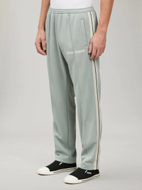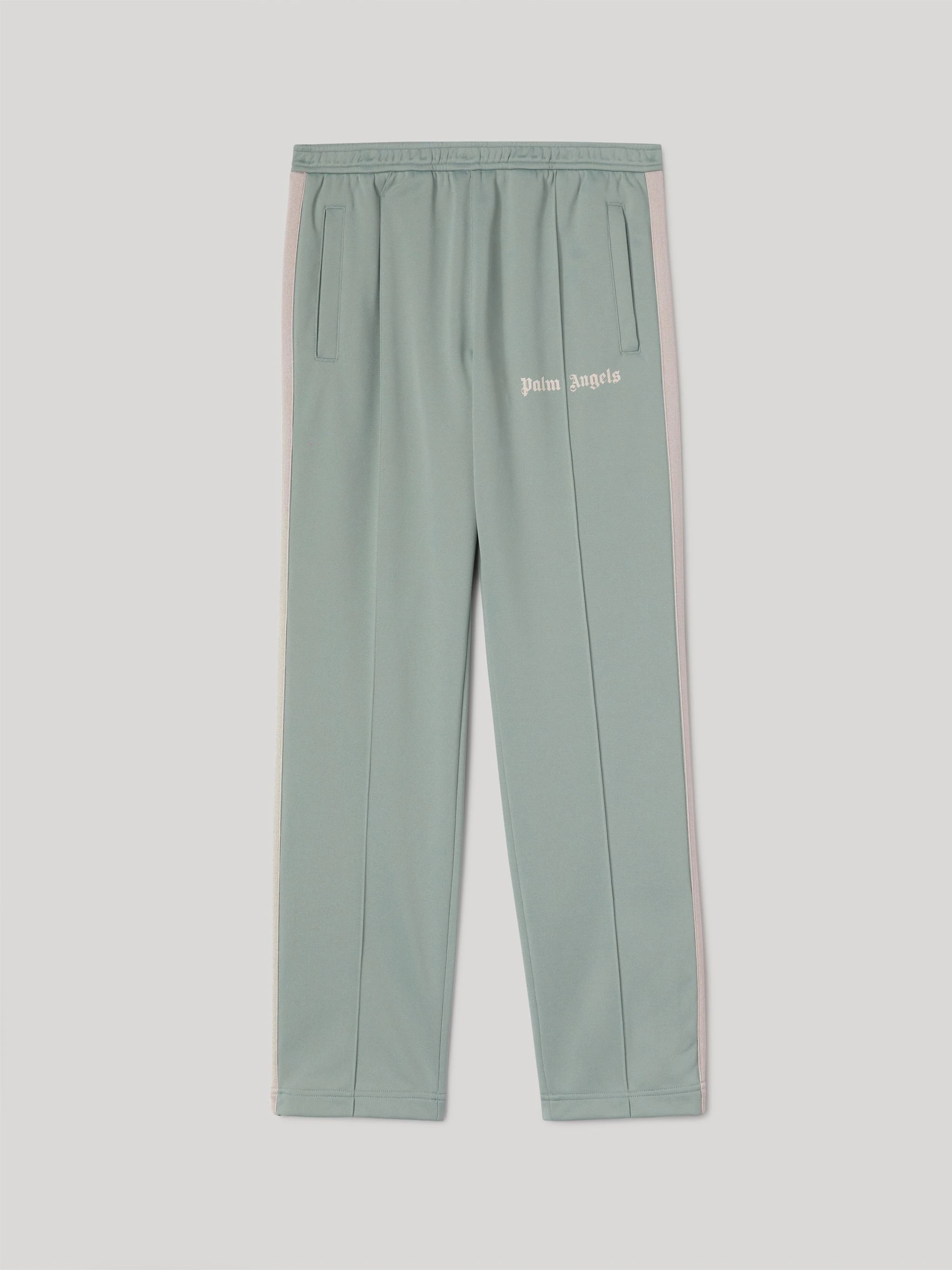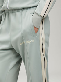 SLIM LONG TRACK PANTS IN SEAFOAM AZURE. ELASTICIZED WAISTBAND. WHITE PALM ANGELS LOGO PRINTED AT FRONT. WHITE STRIPES AT SIDE LEGS. FABRIC 100% POLYESTER MODEL ANDREA WEARS SIZE M HEIGHT: 6'1 (185 CM) CHEST: 34" (86 CM) WAIST: 29" (73 CM) HIPS: 35" (89 CM) PRODUCT ID: PMCJ004S22FAB0025203