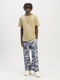 SHORTS SLEEVES T-SHIRT IN MILITARY COTTON WITH "PALM ANGELS" LOGO PRINTED IN BLACK AT COLLAR AT FRONT. "MIAMI" LOGO PRINTED IN BLACK AT COLLAR AT BACK. CREWNECK COLLAR. FABRIC 100% COTTON PRODUCT ID: PMAA072S23JER0115610