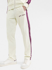 logo-print track pants Inspired by American street culture, Palm Angels tells a story through its garments by making use of bold designs and branding. Like these white track pants detailed with a logo print at the leg and stripes on the side. Made in Italy Composition Outer: Cotton 75%, Polyamide 25% Lining: Cotton 100% Body: Polyester 100% SIZE & FIT Model measurements Height 6 ft 2 in(1.88 m) Bust/Chest 37.79 in(96 cm) Hips 38.58 in(98 cm) Waist 29.52 in(75 cm) FittingInformation This piece fits true to size. We recommend you get your regular size Cut for a relaxed fit Made with a mid-weight fabric Washing instructions Machine Wash