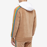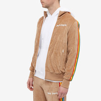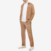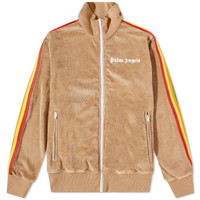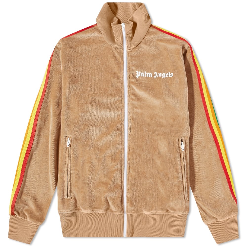 Palm Angels’ designer Francesco Ragazzi adds a velour twist to the classic track top for a cosy touch this season. Crafted from a soft cotton blend, it arrives in a slim-fit silhouette with a high-neck zip fastening and two side pockets.The brand’s white gothic branding is printed on the chest and you’ll also find rainbow taping down the arms. Pair with the brand’s signature track pants to channel true 90s style. - 80% Cotton, 20% Polyester - Zip Closure - Funnel Neck - 2 Side Pockets - Printed Branding - Ribbed Trims - Made in Italy