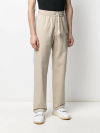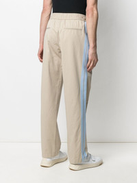 side-stripe straight-leg trousers What would happen if your favourite chinos fell into your activewear drawer? Palm Angels drops a hint with these side-stripe trousers and their hybrid drawstring-waist design. The best of both worlds, indeed. Made in Italy Composition Cotton 100%, Polyester 100% SIZE & FIT Model measurements Height 6 ft 2 in(1.87 m) Bust/Chest 37.79 in(96 cm) Hips 37.79 in(96 cm) Waist 30.31 in(77 cm) FittingInformation This piece fits true to size. We recommend you get your regular size Designed for a slim fit at the waist and loose over the leg Made with a mid-weight non-stretch fabric Washing instructions Machine Wash