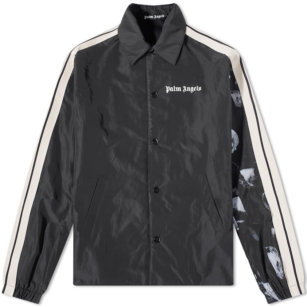 Sport meets grunge with this track jacket from Palm Angels. In black, it’s crafted in Italy from polyester and is detailed with two white stripes down each sleeve with one detailed with a gothic-inspired print. The bold number is complete with two front pockets and it’s signature logo which sits proudly at the chest. - 100% Polyester - Button Closure - 2 Front Pockets - Printed Branding - Made in Italy
