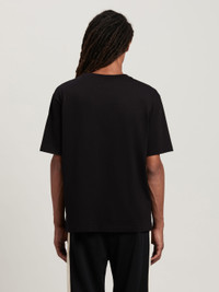 Everyday essentials with signature details. Men's black, slim-fit T-shirt with Palm Angles logo printed in white front center. Mohamed wears size M Height: 6' 1"" (185 cm) Bust: 34"" (86 cm) Waist: 28"" (71 cm) Hips: 37"" (94 cm) PRODUCT ID: PMAA089S24JER0021001