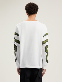 Long sleeve t-shirt crafted from premium cotton featuring bold snake graphics and box logo design on sleeves. - Premium cotton construction - Bold snake graphics on sleeves - Box logo detailing - Crew neckline - Long sleeves - Straight hem DETAILS - 100% Cotton, Rib detail: 100% Cotton - Code: PMAB058F25JER0020355